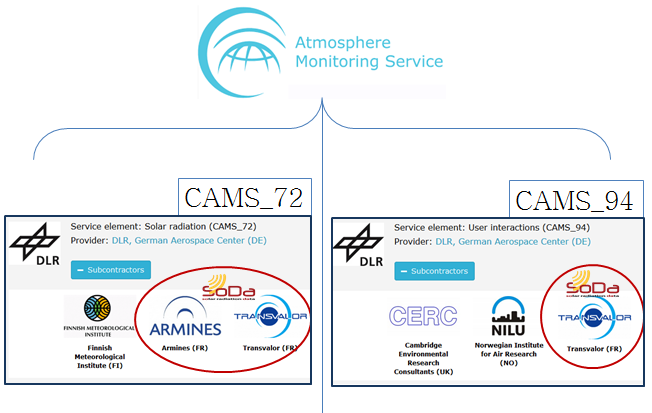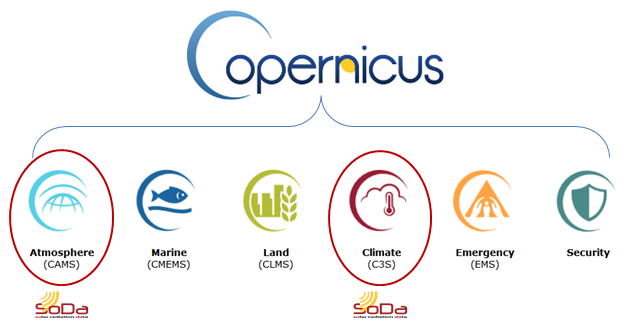 Based on the Copernicus services and on the data collected through the Sentinels and the contributing missions, many value-added services will be created and tailored to specific public or commercial needs, resulting in new business opportunities. In fact, several economic studies have already demonstrated a huge potential for job creation, innovation and growth. All data and products from the Copernicus programme are free and unrestricted for all users. The SoDa team (either Transvalor or MINES ParisTech, or both parties at the same time) is involved in CAMS and C3S. |