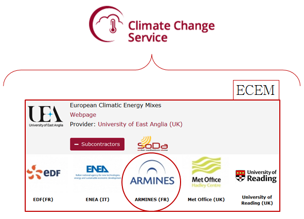 C3SThe Copernicus Climate Change Service (C3S) is still in the development phase and will combine observations of the climate system with the latest science to develop authoritative, quality-assured information about the past, current and future states of the climate in Europe and worldwide. The 27-month EU C3S project European Climatic Energy Mixes (ECEM) started in Nov. 2015 and is led by the University of East Anglia (UEA, UK) in collaboration with Electricité De France (EDF, France), the Met Office (UK), ARMINES (France), the University of Reading (UK) and the Agency for new technologies, energy and sustainable development (ENEA, Italy). The main purpose of ECEM is to enable the energy industry and policy makers to assess how well energy supply will meet demand in Europe over different time horizons, focusing on the role climate has on energy supply and demand. They develop a particularly efficient tool entitled the ECEM Demonstrator to explore different scenarios and models that we invite you to test by yourself.